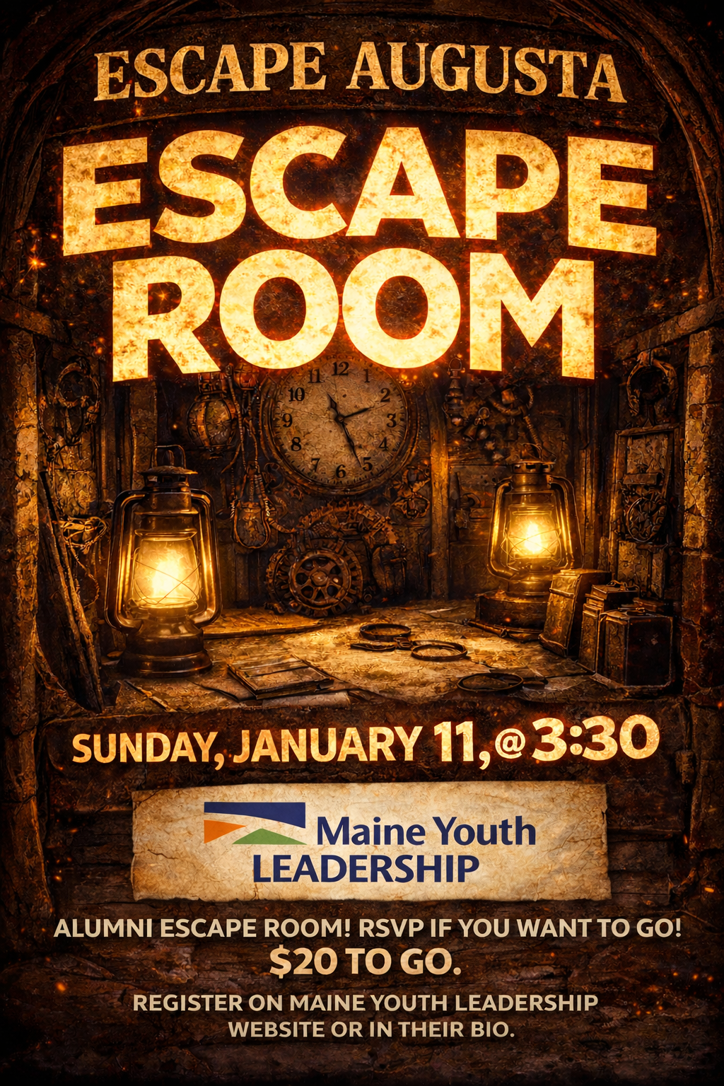 Join us for our winter alumni event at the Escape Room in Augusta. Reserve your spot now - space is limited so jump on it now! We’ll be going on January 11th in the afternoon, and people need to sign up by January 4th. $20/alumni! Scholarships available, please email maineyouthleadership@maineyouthleadership.org with any questions or to […]